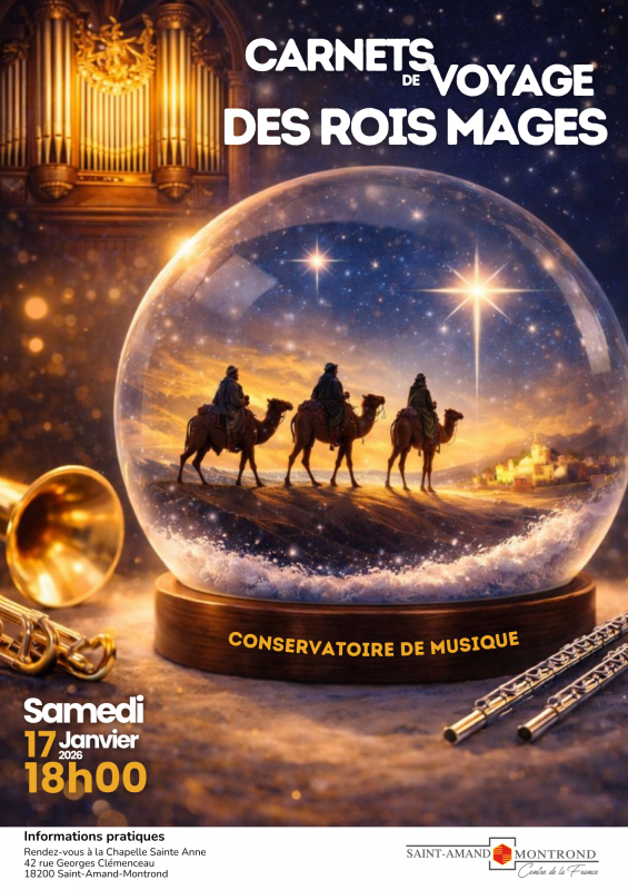 Le Conservatoire vous invite à un moment musical hors du temps, inspiré du voyage des Rois Mages, entre mystère, lumière et émotions. Un concert qui promet de faire voyager l’imaginaire autant que les oreilles.