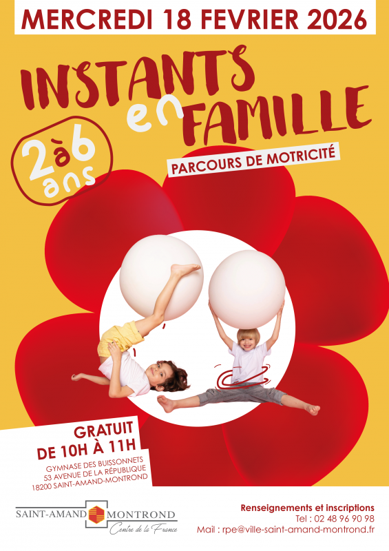 Animation gratuite, sur inscription obligatoire auprès de la Maison de la Petite Enfance au 02 48 96 90 98 ou par mail à rpe@ville-saint-amand-montrond.fr
