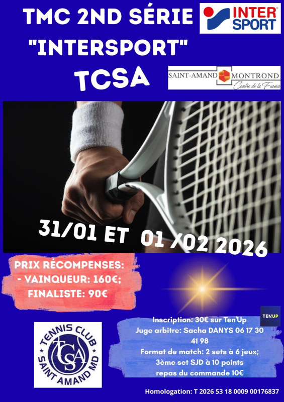 👉 Les 31 janvier et 1er février 2026, place au TMC 2e Série “Intersport”, un format intense et compétitif réservé aux joueurs classés.