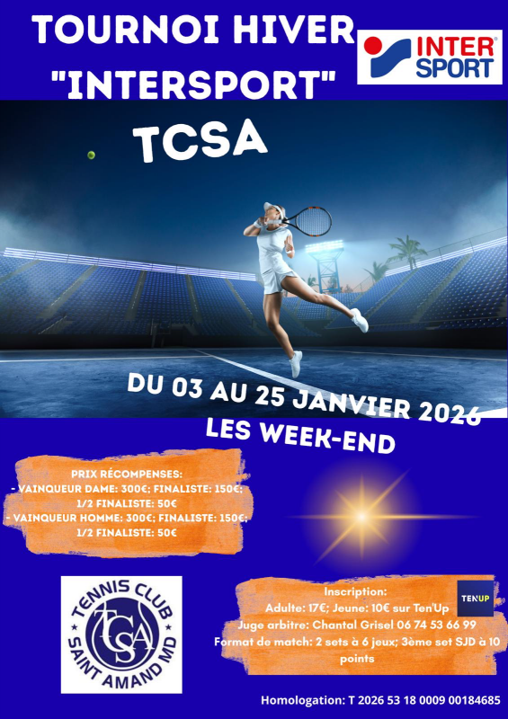 👉 Du 3 au 25 janvier 2026, le Tournoi Hiver “Intersport” se jouera chaque week-end, avec des tableaux dames et hommes et de belles récompenses à la clé.